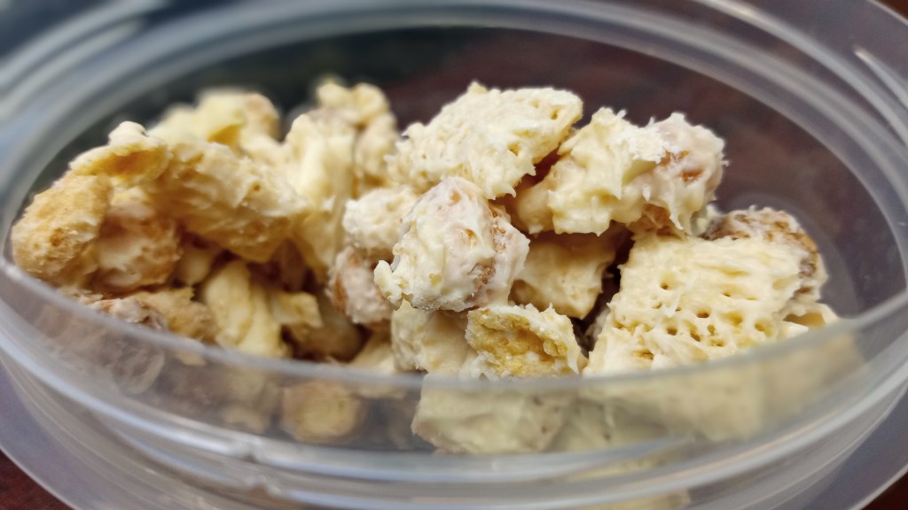 - Melt second package of almond bark and repeat steps 3–5 with the remaining ingredients. You can reuse the bowls from the first batch.